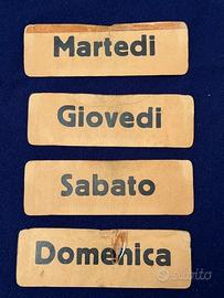 calendario perpetuo da muro manuale. A differenza dei calendari annuali, questo tipo di calendario manuale può essere utilizzato per un numero indefinito di anni, regolando manualmente le schede per mostrare la data e il giorno della settimana corretti.