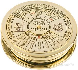 Calendario Perpetuo Nautico Stile Vintage Ottone Lente D’Ingrandimento Con Scatola Legno Artigianale