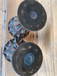 Coppia di calici realizzati con bossoli di mortaio/ cannone. Anni 50.