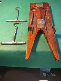 Articolo particolare e difficile da trovare, trattasi di un rimuovi stivali. Non c'è dubbio che i due ganci servono per "tirare" gli stivali, quindi è anche un calzante per stivali. Da me attribuito inizialmente, e credo erroneamente, al mio bisnonno come oggetto in dotazione ai soldati della grande guerra. Potrebbe però essere un oggetto per la caccia o, più verosimilmente, per stivali da cavallo. Il problema è che tutti, compreso il bisnonno, siamo stati cavalieri. Questo non rende certo il periodo. L'unica cosa sicura e confermata è che si chiama Jack ed è sicuramente datato.