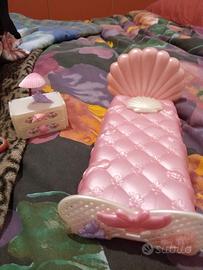 Camera da letto di Lady Lovely Locks, Enchanted Island, isola incantata Dame Bouclelline, Lady lockenlicht. In buone condizioni. Quello che vedi in foto, è quello che è proposto in vendita, e quindi il letto con il suo cuscino a conchiglia, i 2 comodini con i cassetti e le lampade, il como con specchio e lo sgabello. I 2 cigni attaccati alla testiera dei piedi del letto, manca un chiodino per appenderlo, ma rimangono comunque appesi. Lo specchio, è in ottime condizioni, vedete la foto delle mie mani dentro. Per ulteriori foto, o video, sono a disposizione