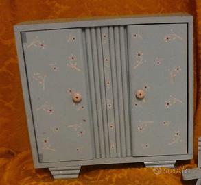 Camera in legno per bambole risalente agli anni '40 composta da: