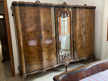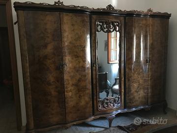 Camera stile chippendale, composta da: N.2 comodini Letto Armadio 5 ante da 55 Cassettiera/comò con specchiera