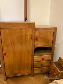 Cameretta in legno composta da letto, comodini con specchio, comò con 3 cassetti, armadio completo di cassetti e bastone appendi abiti , 2 sedie