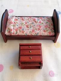Cameretta bambino neonato, stile retrò vintage, collana De Agostini anni '80, color mogano, casetta delle bamboline, collezionabile.