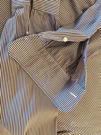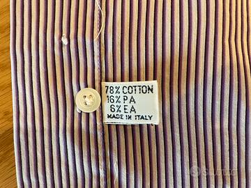Camicia a righe viola, lilla, nere, Barba Napoli cucina a mano, 39 15-1/2, usata, in ottime condizioni, 78% cotone, 16% poliammide, 6% elastan.