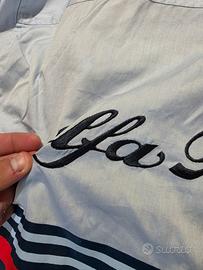 [ITALIANO] In vendita un pezzo eccezionale di storia del motorsport italiano: camicia ufficiale Alfa Romeo Martini Racing, frutto della prestigiosa collaborazione con la casa di alta moda milanese Mila Schön. Questo non è un comune gadget da pista, ma un capo sartoriale d'epoca risalente agli anni d'oro dell'Alfa Romeo nel DTM (Campionato Tedesco Turismo). Dettagli che ne certificano il valore: Stato di conservazione: "Maniacale". Fondo di magazzino mai utilizzato, i colori (rosso e blu Martini) sono vividi e il tessuto è rigido e perfetto. Loghi: Sul petto è presente il raro logo ricamato "Mila Schön Sport" che fonde la 'M' della stilista con un volante e una corona d'alloro. Sul retro e sulla manica spiccano le iconiche grafiche Martini Racing e Alfa Romeo. Manifattura: Prodotto interamente in Italia con materiali di alta qualità. Un investimento sicuro per collezionisti del marchio del Biscione o amanti del vintage d'autore "Made in Italy". [ENGLISH] Up for sale is an ultra-rare piece of Italian racing history: an original Alfa Romeo Martini Racing shirt, designed by the luxury fashion house Mila Schön. This is a premium "Teamwear" garment from the 1990s, the golden era of the legendary Alfa 155 V6 TI in the DTM championship. Highlights: Condition: New Old Stock (NOS). Flawless, never worn, never washed. Kept in a dark, dry place for decades. Colors are incredibly vibrant. Branding: Features the exclusive "Mila Schön Sport" embroidered logo on the chest (steering wheel & laurel wreath design). Large Martini Racing stripes and Alfa Romeo script on the back and sleeve. Quality: Genuine "Made in Italy" craftsmanship. High-quality cotton. A must-have for any serious Alfa Romeo collector or vintage motorsport enthusiast worldwide.