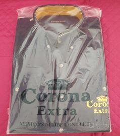 CAMICIA BIRRA CORONA EXTRA VINTAGE RARA O INTROVABILE COLORE BLU' TAGLIA " L " MEXICOS NUMBER BEER NUOVA ANCORA SIGILLATA