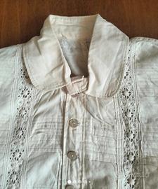 Camicia da camera antica primi 800 proveniente da un guardaroba di una prozia dell'Italia meridionale. Per gli amanti dei pezzi rari antichi. Indumento che racconta le abitudini delle donne dell'epoca, chiamate anche matinée, secondo la moda francese, si indossava la mattina su una gonna semplice o con una sottogonna quando la donna rimaneva in casa la mattina. Con pizzi e ricami a mano. Segni del tempo perché conservate in una cassapanca. Come da foto