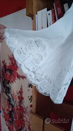 Delicata camicia da notte vintage con dettagli in pizzo vintage anni '70 - Maniche corte con bordo in pizzo. - Scollo rifinito con pizzo floreale. - Chiusura anteriore con piccoli bottoni. - Orlo inferiore impreziosito da pizzo.