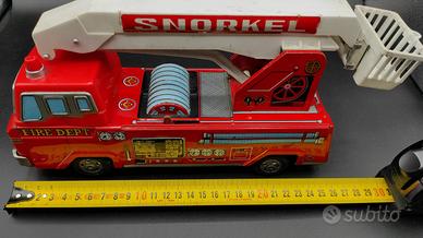 Camion dei Pompieri in latta vintage anni 60 Marca Y - Made in Japan. Lungo circa 30cm Fire Dept Snorkel Una volta inserite le pile di tipo C il camion inizia a camminare per poi fermarsi e alzare la scala. Poi viene tirata giu e riprende a camminare No tuttosubito Preferisco il ritiro a mano con pagamento in contanti ma accetto anche bonifico e paypal con l'aggiunta delle commissioni se devo spedire. Spedisco solo dopo aver ricevuto il pagamento con uno dei metodi sopra citati Spedizione 7euro
