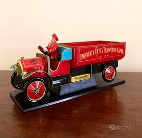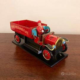 Dalla nostra selezione, un’iconica riproduzione pubblicitaria degli anni '90 del celebre camion Fiat 18BL della "Premiata Ditta Trasporto Caffè Vergnano". Un pezzo dal grande fascino estetico, reso unico da una storia vissuta: questo esemplare è sopravvissuto a un'alluvione. L'evento ha lasciato sul metallo una patina autentica che ne sottolinea il carattere di "testimone del tempo". Caratteristiche Modello: Replica Fiat 18BL Caffè Vergnano (dal 1882). Epoca: Anni '90. Materiale: Metallo/latta litografata. Dimensioni: L 34 cm | Lg 13 cm | H (incl. autista) 17,5 cm. Stato: Oggetto vintage con segni dell'evento storico subito. Meccanismo non funzionante, venduto come raffinato oggetto d'arredo o da collezione tematica. Un pezzo di modernariato perfetto per amanti del brand Vergnano, collezionisti di latte pubblicitarie o per chi cerca un elemento decorativo con una storia di resistenza da raccontare. Ritiro disponibile a Ferrara SELEZIONE PRIVATA EM Curatori di pezzi d'autore, modernariato e rarità con un’anima. 📱 Seguici su Instagram: @selezioneprivata [vendita tra privati]