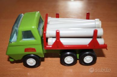 2 modellini metallici “Rico”, serie “Mini Sanson”, made in Spain. Camion con ribalta e camion e per trasporto tubi. Giocati, ma in ottime condizioni, come da foto. Eventuali spese di spedizone a parte, vale il visto e piaciuto.