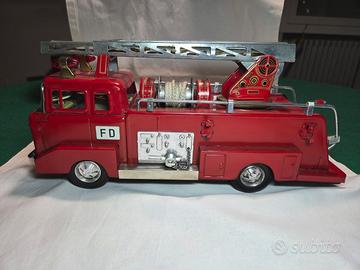 Modello in latta Camion Pompieri Ford - produttore Bandai, sirena azionata a mano funzionante. Misure 12 x 14 x 32 cm