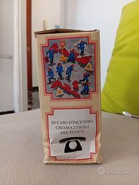 Il camion dei pompieri filoguidato nel set vintage mostrato nell'immagine presenta diverse funzioni interattive tipiche dei modelli degli anni '80 e '90: Movimento Motorizzato: Grazie al telecomando a filo, il veicolo può muoversi avanti e indietro. Effetti Sonori e Luci: questo specifico modello include sirene realistiche e luci di emergenza lampeggianti. Componenti Mobili: Il camion è dotato di una scala estensibile e rotante che può essere alzata per simulare salvataggi ad alta quota. Dettagli Realistici: Sulla fiancata sono presenti riproduzioni di attrezzature come manicotti e pannelli di controllo. Il set è completo di numerosi accessori, tra cui figurine di pompieri in diverse pose operative, idranti e segnaletica stradale, permettendo di creare scenari di emergenza completi.