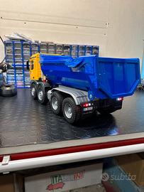 Il modello viene allestito con luci e lampeggianti, sistema di ribaltamento con attuatori lineari, trazione solo su gli assi posteriori con 4 motoriduttori, assali ammortizzati sia anteriori che posteriori, servocomando standard per la sterzata, tutto alimentato a 12v con batteria lipo 3s inclusa nel modello, radio flysky i6s anche lei inclusa nel prezzo.