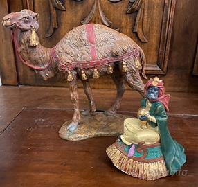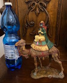 Statuine cammello grande con re magio per presepe Natale. Sono 2 pezzi in buone condizioni, altezza testa cammello 19 cm. e 25 cm. con re magio., lunghezza 22 cm.