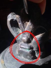 campana in bronzo (XIXsec.) diametro 25cm altezza 30cm compresa le treccia peso 9kg suono pulito e lineare senza oscillazioni. nota musicale MI 5 a 440Hz simbolo del fonditore (nella foto della treccia cerchiato in rosso) ricerca stilistica valutata sull'intera campana da esperti, risalendo al fonditore Pietro bracchi brescia. per qualsiasi informazione, suono foto della ricerca o altro, telefono 3483390738.. consegno nel raggio di100km prezzo trattabile