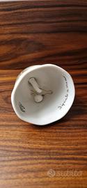 Deliziosa campanella in ceramica, decorata a mano con un motivo natalizio di agrifoglio e pigne.