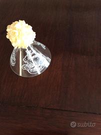 Campanellino in vetro serigrafato e impugnatura con roselline Capodimonte e batacchio in metallo. Logo interno”Acquachiara”.