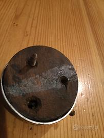 Campanello x porta originale antico, pulsante in osso, esterno metallo, base in legno, diametro 4,6 cm.