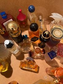 Campioncini di profumi mignon degli anni 80/90, alcuni pieni, altri a metà, alcuni vuoti, confezioni in ottimo stato di svariate marche (Krizia, Laura Biagiotti, Fiorucci, Camomilla, Think Pink, Fila, Gocce di Napoleon, Mariella Burani, Roccobarocco, Poivre, Chanel Egoiste, Chanel Cristalle, Trussardi, 90210, etc.).