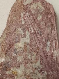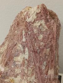 Bellissimo campione mineralogico da collezione identificato come Tormalina Rubellite (Brasile), con cristalli rosa/rossastri in matrice chiara (quarzo/feldspato).