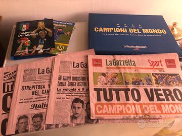7 oggetti relativi a Campioni del Mondo 2006, Gazzetta dello Sport : 1) Foldet completo di monete, 2) Raccoglitore ad anelli , 3) Schede per il raccoglitore, 4) Box Cofanetto con 4 Gazzette, 6) potrachiavi fella Fifa Word Cup Germany, con marchio e ancora imbustato, 6) Grande Manifesto Mondiali 2006, 7) Rivista n. 27, 60 Pagine Speciali su Germania 2006. Tutto come nuovo e ben conservati.