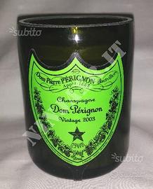 Candela realizzata tagliando e levigando una bottiglia di Champagne Dom Perignon Luminous del 2003.