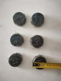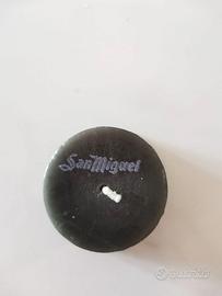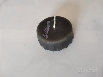 Candela a forma di tappo di birra San Miguel. Colore verde scuro. Diametro 4 cm, altezza 1,5 cm. Nelle foto vedete una candelina già aperta come esempio; quelle che riceverete (6 candele) sono sigillate e visibili nell'ultima foto.