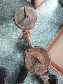 antica coppia di candelabri dell'inizio '800 con pittura bianca e oro d'epoca. altezza 80 centimetri circa in legno. consegna a mano zona Bergamo e provincia. vendesi in coppia e non singolarmente. per info contattami.