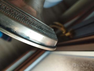 Di proprietà della mia famiglia da cieca 70 anni, in ottimo stato di conservazione, peso di Argento effettivo 375 gr per ogni candelabro totale 700 gr.