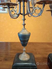 Candelabri Coppia Antichi Francesi Francia Stile Napoleone Bronzo Dorato.