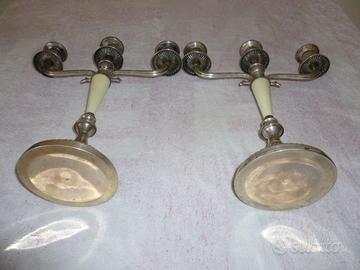 Vendo 2 Antichi Porta candele in Argento 800, con impugnatura in Avorio. (come da foto).... (Ottima idea REGALO).