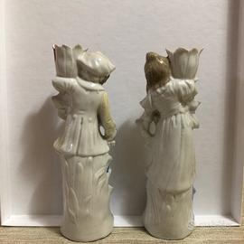 Stupendi candelabri in porcellana dipinti a mano. Dedicati. Dell'800. Pezzi unici. Ottime condizioni. Altezza 19 cm x 5,5 cm. Invio anche tramite corriere chiedi info.