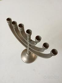 vendo candelabro Ebraico a sette bracci in ottone alto15,3cm largo12,3cm diametro alloggiamento candeline 9mm