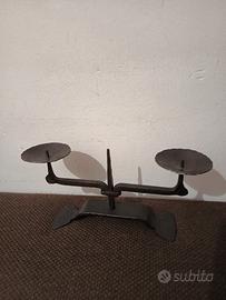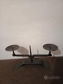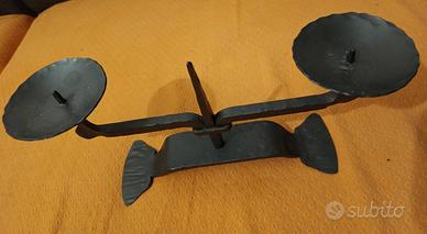 Vendo grosso candelabro in ferro battuto degli anni '60, altezza cm 15, larghezza base cm 23, larghezza bracci cm 32, peso hg 764.