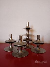 Sistema componibile di 5 portacandela in acciaio. Prodotto da BMF (Bayerische Metall Fabrik) tra il 1965 e il 1970. Designer: Fritz Nagel. Diametro foro: 13 mm