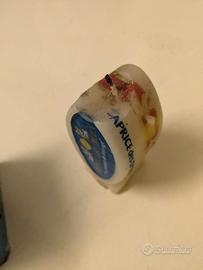 La candela "Caprice des Dieux" riproduce la forma e l’etichetta del noto formaggio francese, con il logo e il motto “un amour de fromage”. Usata.