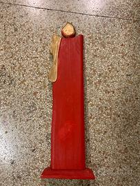 Bellissime sagome autoportanti, di 2 grandi Candele Natalizie (a sagoma) set.2 pz. acquistabili solo in coppia, in legno dipinto Rosso e Oro - con base.