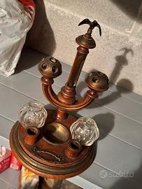 Antico candeliere in legno e ottone, probabilmente risalente al periodo 1900-1950.