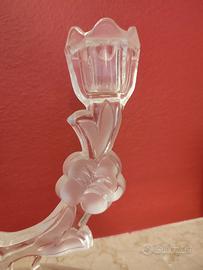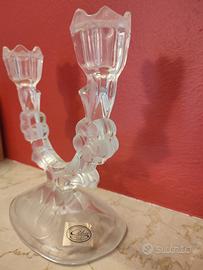 candeliere Vintage in cristallo con etichetta originale a due braccia