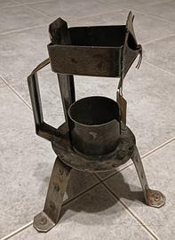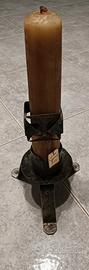 Candeliere in ferro battuto stile medievale, anni 50 /60. Made in Italy, fucina Farris. Altezza senza candela 28 cm.