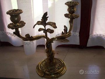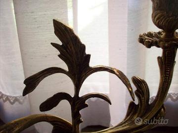 a due barcci in ottone dorato,realizzazione di pregio, finemente lavorato ed intarsiato con foglie, pezzo a fusione unica, integro, alto cm 27, larghezza cm 29, base diametro cm. 15
