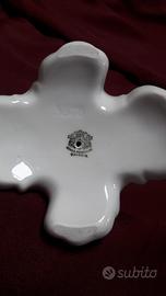 candeliere vintage in porcellana bianco e verde pastello ,decorato a mano con BUCHET di fiori e cartigli lumeggiature in oro , ANNI 40/50, firmato GEROLD PORZELLAN, BAVARIA, ALTEZZA 8 CM. CIRCA X 11 X9, 5 , PERFETTO NO CREPE O ALTRI DIFETTI ,VENDO EURO 58. EVENTUALE SPEDIZIONE + 13 EURO ,FORMULA VISTO È PIACIUTO NO RESI SI ACCETTA SOLO PAGAMENTO IN CONTRASSEGNO È SOLO FRA INTERESSATI, ASTENERSI PERDITEMPO GRAZIE.