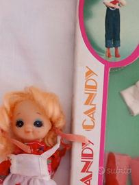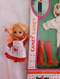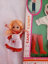 Abitino bambola Candy( tipo Barbie) anni'80 mai tolto dal box. Più mini bambolina Candy fiammiferina ,usata con mani mancanti .Polistil.
