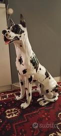 Statua in ceramica vintage di cane alano arlecchino. in perfette condizioni. H 91 cm
