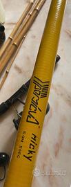 Vendo canna da pesca Persicus Micky 5 metri. Telescopica 5 sezioni, robusta e pratica. Assieme ad essa, vendo anche mulinello Daiwa, vintage giapponese, meccanico semplice e duro. (Prezzo trattabile)