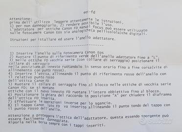 Adattatore X CANON OTTICHE FD /EF NUOVOcome d foto .