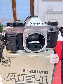 Canon AE-1 Program pari al nuovo Obiettivo Canon FD 50/1.8 Flash Canon188A Confezioni originali con filtri e accessori